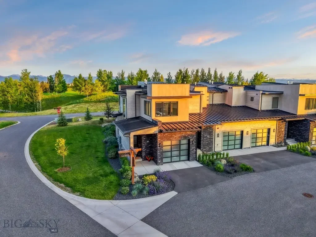 Welcome to 20 Caymus Lane Unit D — a luxury lock-and-leave villa in the coveted Black Bull Golf Community. Backing to open space with expansive views to the south and east, this end-unit residence offers a rare blend of tranquility, refined design, and resort-style living in Bozeman, Montana. Enter through an oversized formal entry on the main level, where you'll find a heated 1-car garage with epoxy floors and generous storage. Upstairs, the heart of the home features a sunlit, open-concept layout with a gourmet kitchen outfitted with Thermador stainless steel appliances, a pantry, and a wet bar — ideal for entertaining. The primary living area flows into a cozy sitting room anchored by a sleek gas fireplace, leading out to a spacious back deck with natural gas hookup and panoramic open space views. This 2,255 square foot villa offers two luxurious primary suites. The main suite boasts a floor-to-ceiling tiled walk-in shower and a custom closet system, while the secondary suite includes a soaking tub with tiled surround and another fully built-out closet. A half bath is conveniently located near the kitchen and living room. Additional features include a dedicated laundry area, central A/C, water softener, and window coverings throughout. Black Bull HOA ($475/month) covers lawn care, snow removal, and exterior maintenance, plus access to world-class amenities including a private golf course (membership required), clubhouse, pool, fitness center, and miles of trails. With elevated finishes, unobstructed views, and low-maintenance living in Bozeman, this is your version of a permanent vacation — just minutes from Downtown Bozeman and the airport.