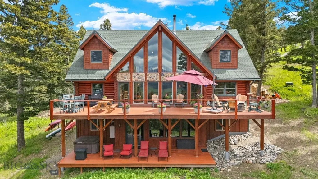 Welcome to Moose Haven, a stunning log home nestled in the serene beauty of nature. This extraordinary property offers 5 bedrooms, an office/bedroom, and 4 baths, providing flexibility for those requiring ample space. Prepare to be captivated by the incredible panoramic views of the majestic Bridger Mountains, which can be enjoyed from various vantage points, including three expansive decks. Start your mornings on the south deck, sipping a warm cup of coffee as you witness the breathtaking sunrise over the mountains. In the evenings, retreat to the upper decks or unwind in the hot tub on the lower deck, where you can marvel at the awe-inspiring sunsets that paint the sky. This home boasts an array of features that are sure to leave you in awe. Experience the comfort and luxury of radiant heat floors, providing cozy and consistent warmth throughout the residence. The surrounding forest is teeming with abundant wildlife, allowing you to observe nature's beauty from your doorstep. Situated on a generous 10.8-acre lot, this property offers a true sense of seclusion and tranquility. The wooded surroundings provide privacy and a serene atmosphere, creating a retreat-like ambiance. Inside the home, you will find beautiful appointments and meticulous craftsmanship throughout. From the soaring ceilings to the carefully selected finishes, every detail has been thoughtfully considered to create a one-of-a-kind dream home. This is not just a house; it is a sanctuary where you can escape the hustle and bustle of everyday life and immerse yourself in the wonders of nature. Conveniently located, Moose Haven offers the perfect balance of peaceful seclusion and accessibility to amenities. Just 15 miles away, you'll find the charming and historic downtown Bozeman, where you can explore local shops, dine at exquisite restaurants, and immerse yourself in the vibrant community. For outdoor enthusiasts, the renowned Bridger Bowl ski area is a mere 18 miles from your doorstep. Spend your winters carving through fresh powder and enjoying world-class skiing and snowboarding adventures. Whether you're seeking the tranquility of nature or the excitement of nearby attractions, Moose Haven provides the ideal location to embrace both. This remarkable log home offers breathtaking views, abundant wildlife, and a seamless blend of rustic elegance and modern comfort. Don't miss the opportunity to own this extraordinary property and experience the ultimate in mountain living.