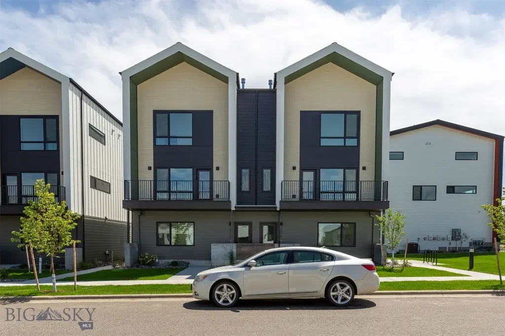 Welcome to the Kul Condos at Gran Cielo, where modern luxury meets exceptional design. The Kul 3 floor plan is a thoughtfully designed 3-story, 3-bedroom, 3.5-bath condo featuring expansive euro-style windows, sleek Scandinavian finishes, custom tilework, designer hardware and fixtures, a GE appliance package, quartz countertops, a solar energy system, and air conditioning. Created by Studio H Architects, this sought-after layout includes a junior suite and an oversized 1 car garage on the first floor. The second level boasts an open-concept kitchen, living room, dining area, powder bath, laundry, and a balcony. The top floor provides the ultimate retreat with incredible natural light, the primary bedroom, a guest bedroom, a guest bath, and a versatile den area. Gran Cielo, Bozeman's newest premier neighborhood, is situated in the desirable south side and showcases high-end homes and condos surrounding a beautifully designed central park. 3074 S 31st is will be move-in ready soon! Pictures of similar model.