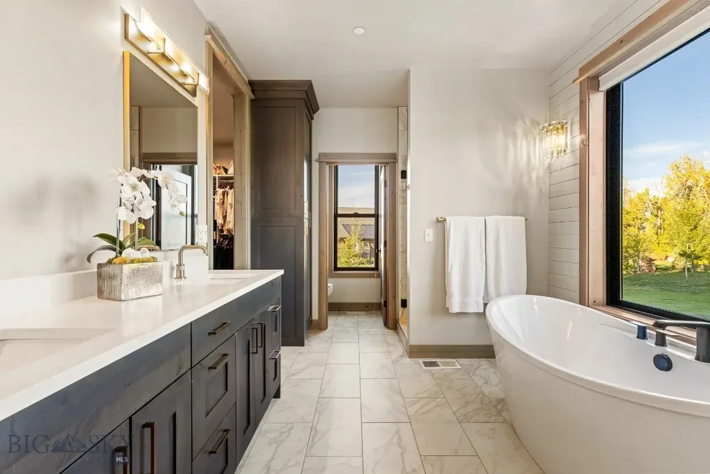 Inspired by the timeless coastal elegance of Martha’s Vineyard, this custom 6,146 sq ft home in the coveted Home 40 community blends refined design with Montana’s mountain backdrop. Set on 1.28 acres that back to open green space and trail systems, every element of this residence was thoughtfully curated by its owner.